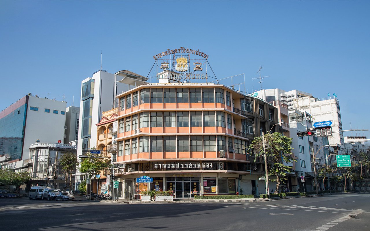 ชื่อ "ห้างขายยาตราปราสาททอง" อยู่ที่ห้าแยกพลับพลาไชย